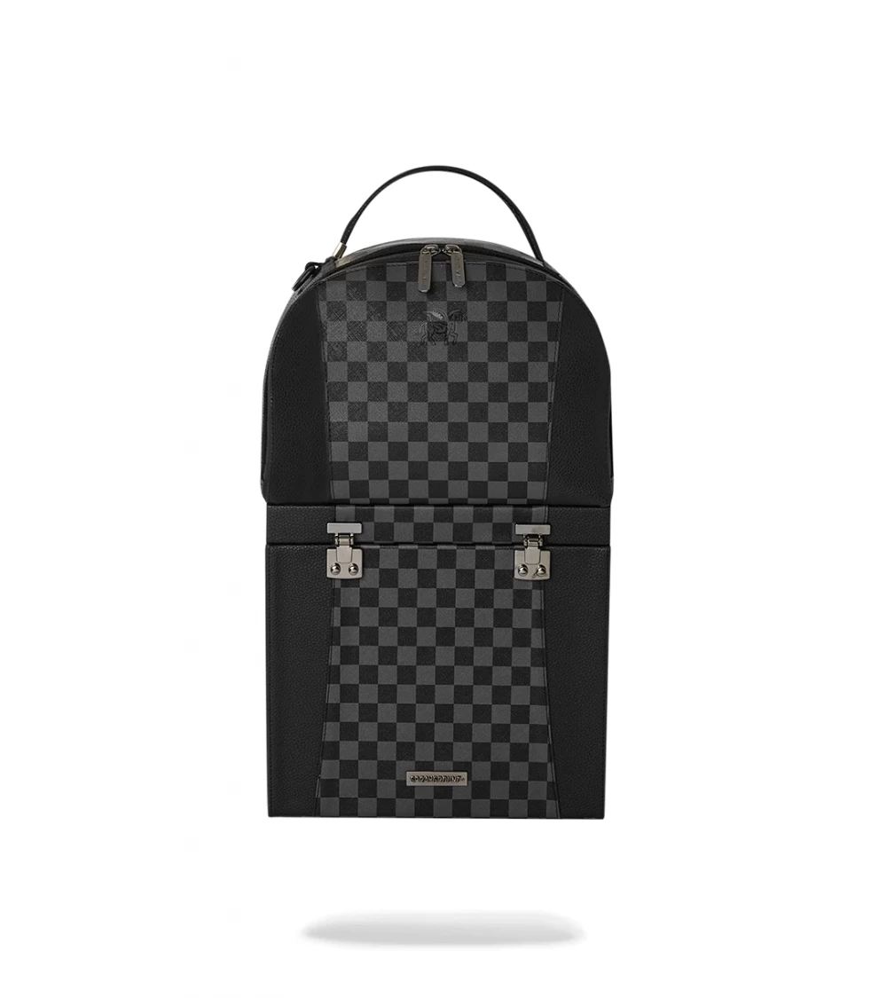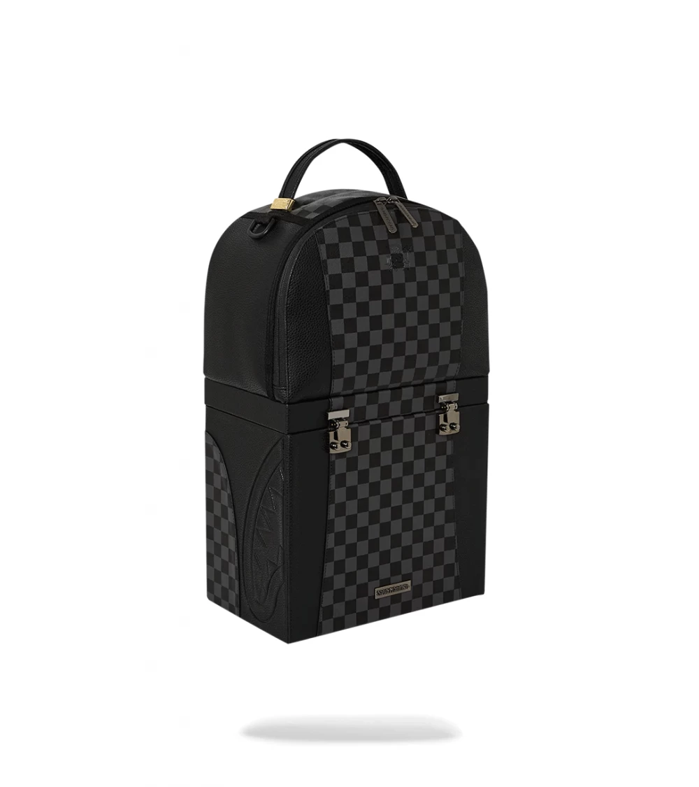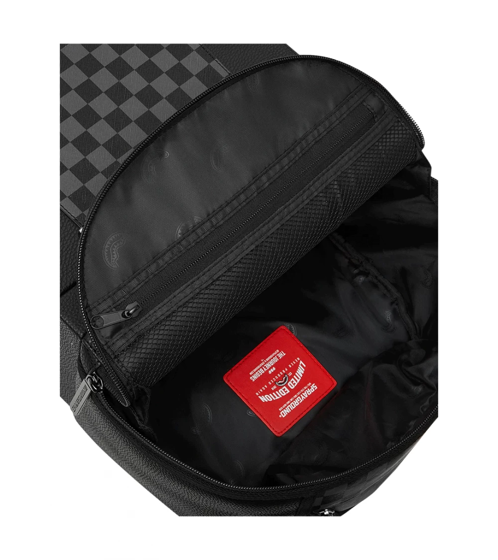 Sprayground’s Raceway Shadow Phantom collection stands out and surpasses the others in its chic and distinctive features. “Half Box” in fact helps to imagine this new style of backpack very much like a suitcase. Shark Bite motif on the sides and checks on the front of the backpack, silver and gold trim with red details. The main pocket closes with a zip, the front pocket with two buckles, and the shoulder straps have an adjustable length. The inside of the backpack has numerous compartments including a mesh pocket and an inner mesh pocket, one for glasses and other hidden compartments to keep valuables safe.
