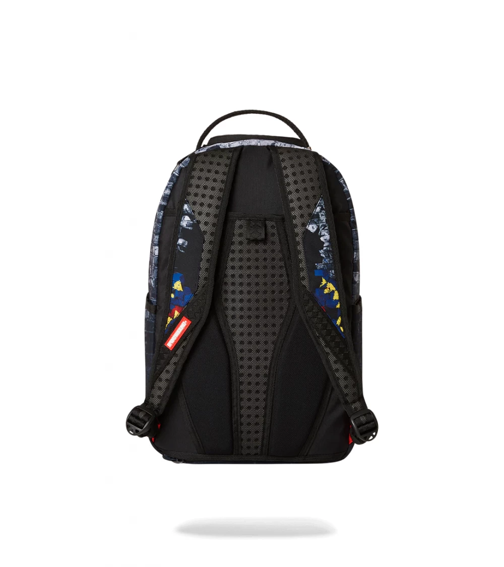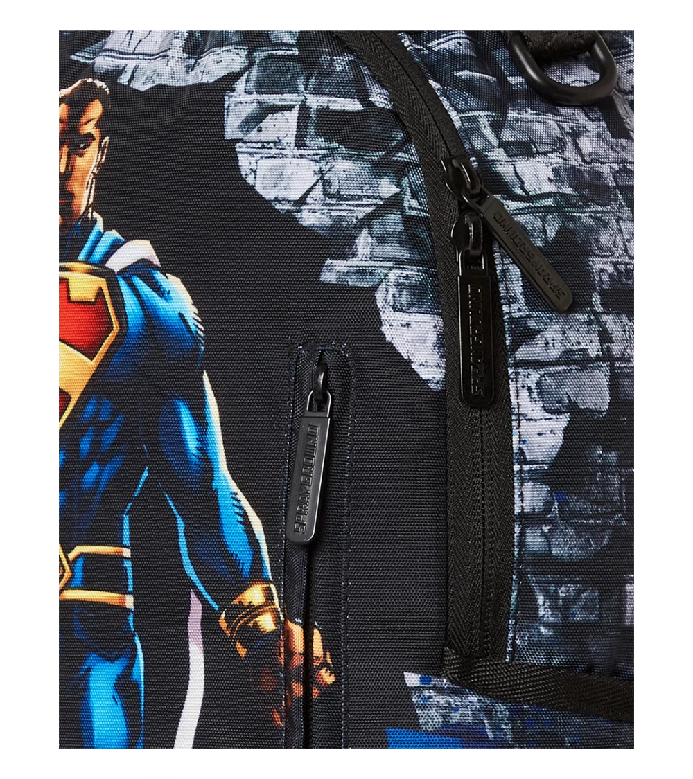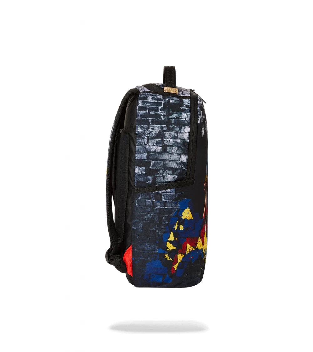 The Sprayground Superman No Stopping Me backpack is dedicated to the famous Marvel character, much loved by young and old alike. The accessory features a handle, padded shoulder straps with customisable webbing and a soft ergonomic back. It consists of a roomy zipped main compartment, practical easy-access side pockets, velvet top spectacle pocket and small front pocket. The interior includes an organiser pocket with mesh and a velour laptop compartment. Zips with metal hardware, PVC Sprayground tag applied to bottom and shoulder strap.