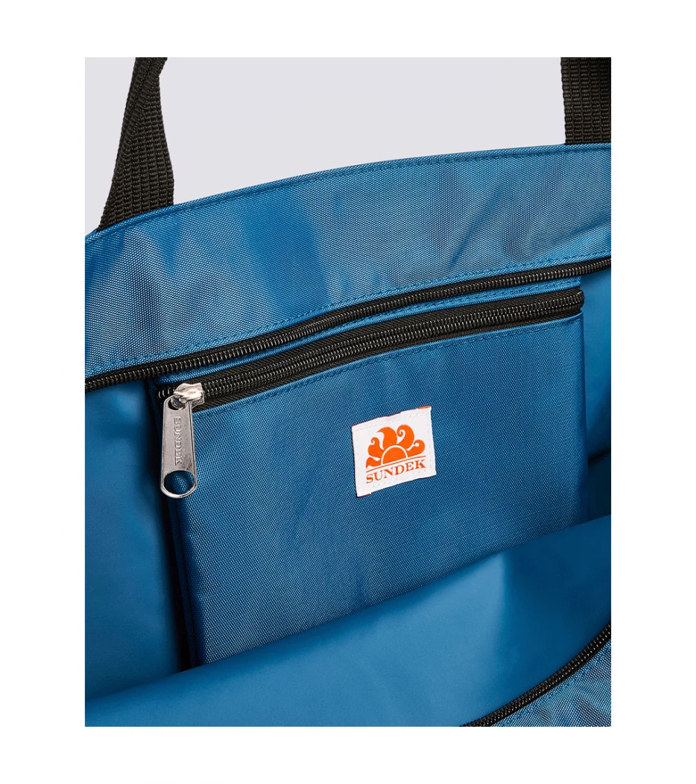 Summer is approaching and the Sundek Maxi Shopping Beach Bag is the perfect accessory: practical, comfortable and roomy, you can fit everything you need for your days at the beach. Made of 100% PVC fabric, the bag features two wide handles, a main zippered closure and a small inside pocket on which the brand’s logo label is sewn. Sundek logo print on the front side. Dimensions 32 x 33 x 22 cm.