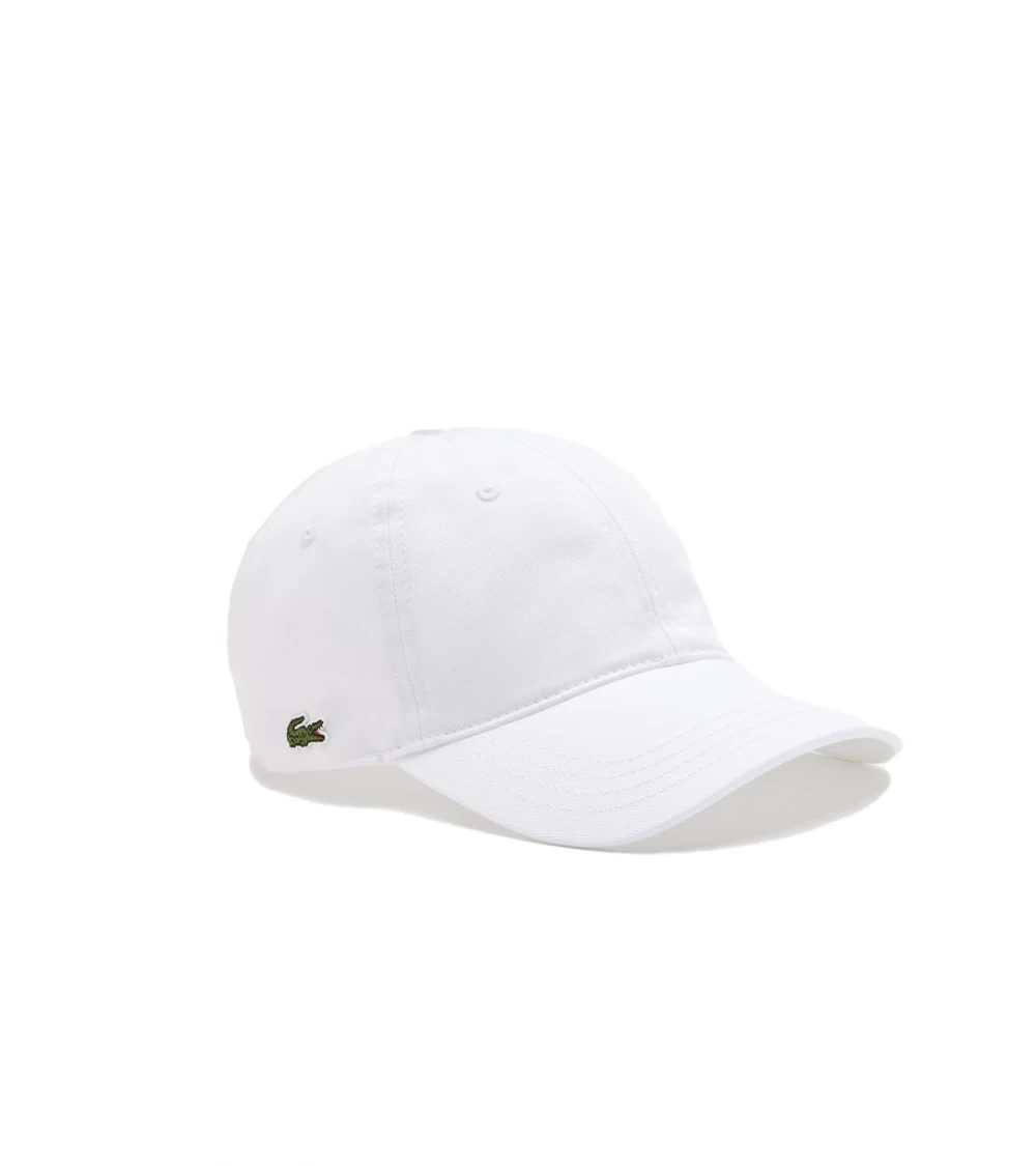 Lacoste’s signature organic cotton twill cap in a minimalist style with the recognisable Lacoste logo stitched on the right side of the accessory. Adjustable back strap and label with logo lettering.