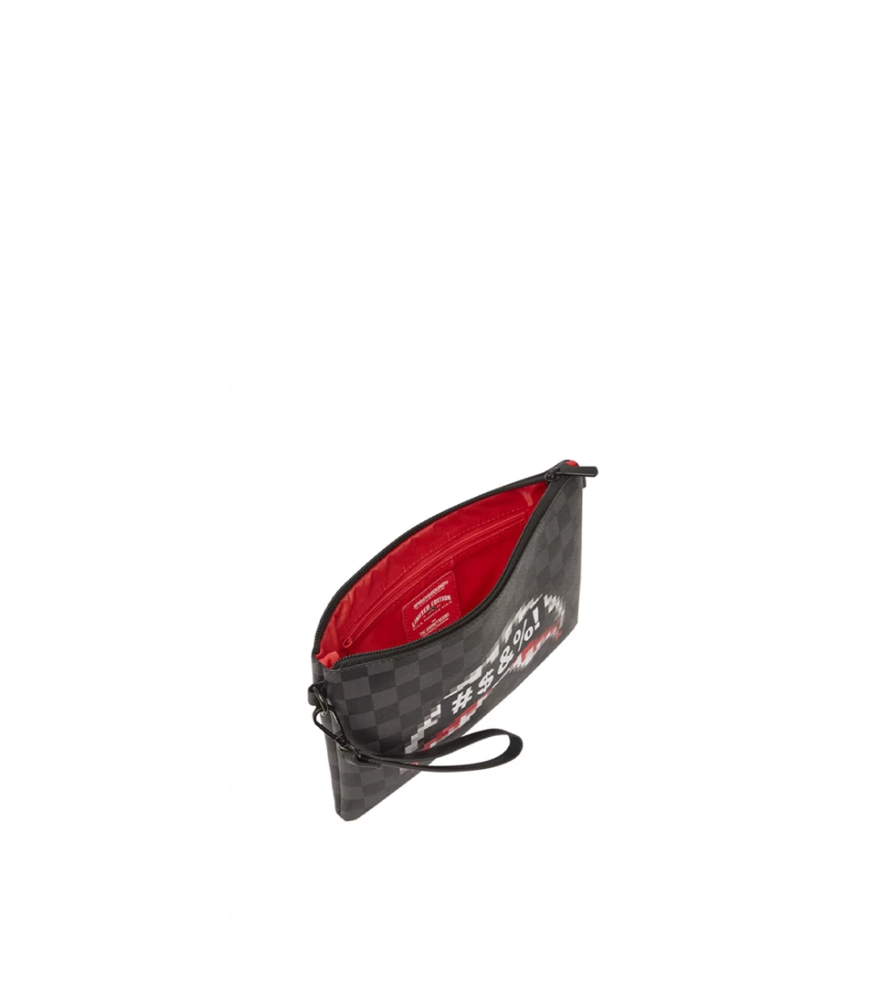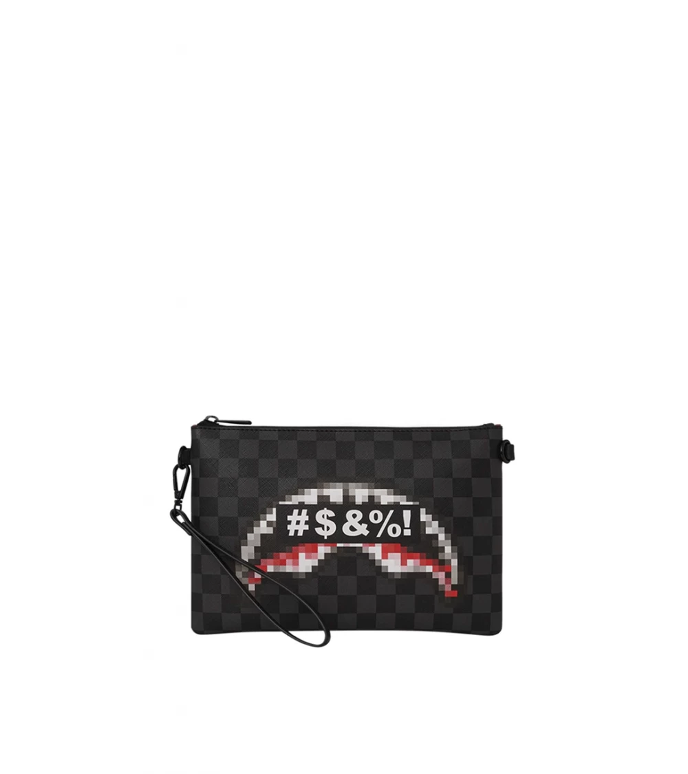 For fans of Sprayground’s Censored line comes the new clutch bag, featuring a print of the classic black and grey check pattern and a printed Shark Bite motif. This capsule clutch bag, made of saffiano-type vegan leather, consists of a zipped main pocket. The nylon-lined interior houses a small zipped compartment. The fit can be customised thanks to the removable wrist strap and the handle applied to the back panel.