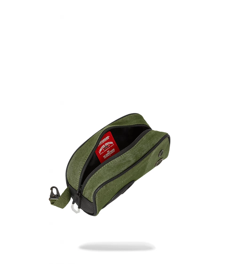 The Special Ops Operation Success clutch bag is ideal for storing small items, pencils or even make-up products. Made of 100 % cotton, it is embellished with shark-shaped cargo pockets, metal eyelets and clips. Zip closure and metal hardware.