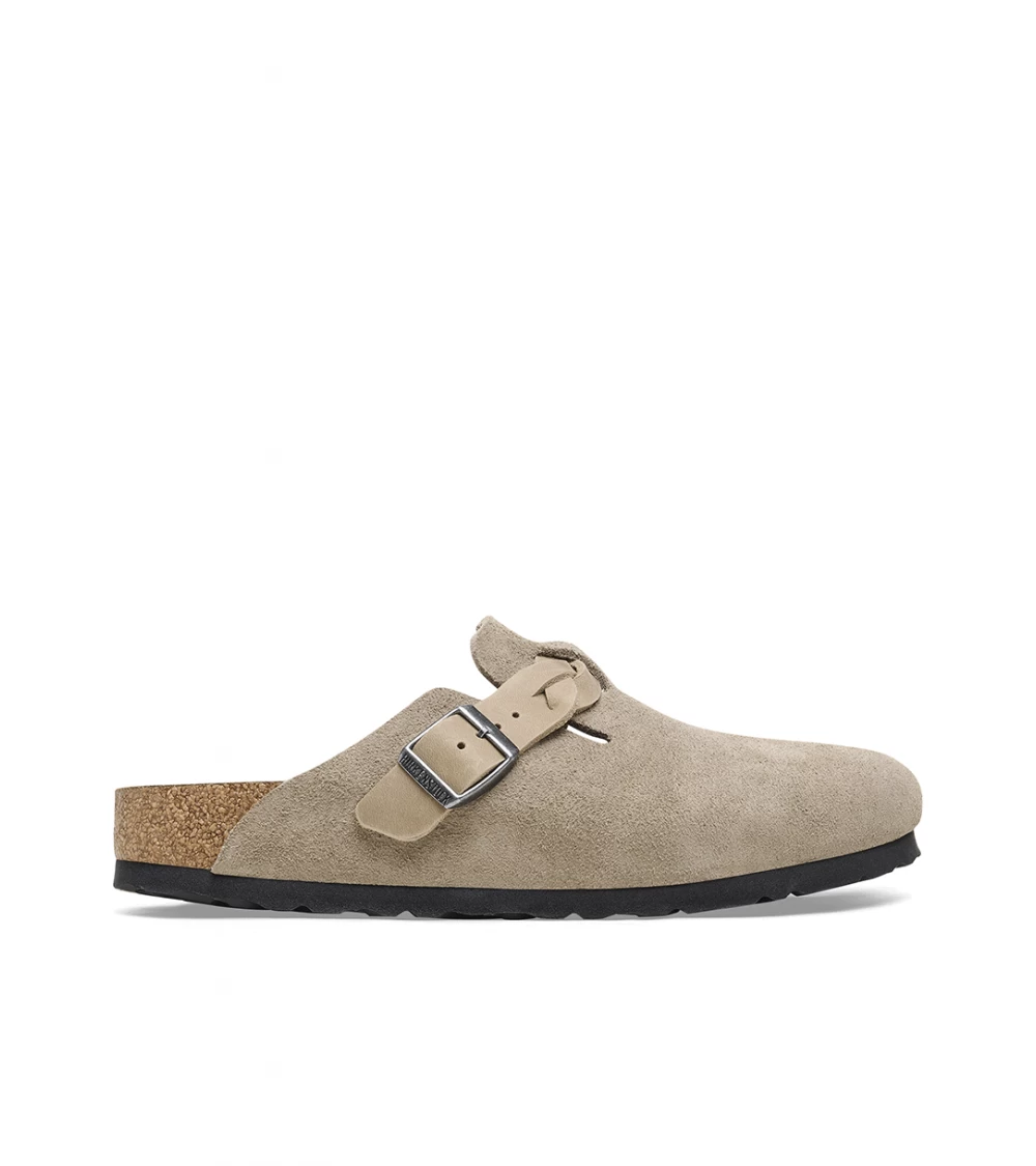 The Birkenstock Boston are a sabot model distinguished by comfort and quality. Ideal for all seasons, their robust construction and the quality of the materials used make them suitable both for everyday use and for moments of relaxation. The upper made of suede leather has a metal buckle that allows the shoe to be adjusted. The heart of every Birkenstock shoe is the anatomically shaped footbed made of cork and latex, which provides excellent support for the arch of the foot and promotes correct posture. The outer sole is made of EVA (ethylene vinyl acetate), a light, flexible and wear-resistant material that provides cushioning and shock absorption. The Bostons fit various styles of clothing, from informal to smart casual. They can be worn with jeans, linen trousers, skirts or dresses, making them a versatile option for a variety of occasions.