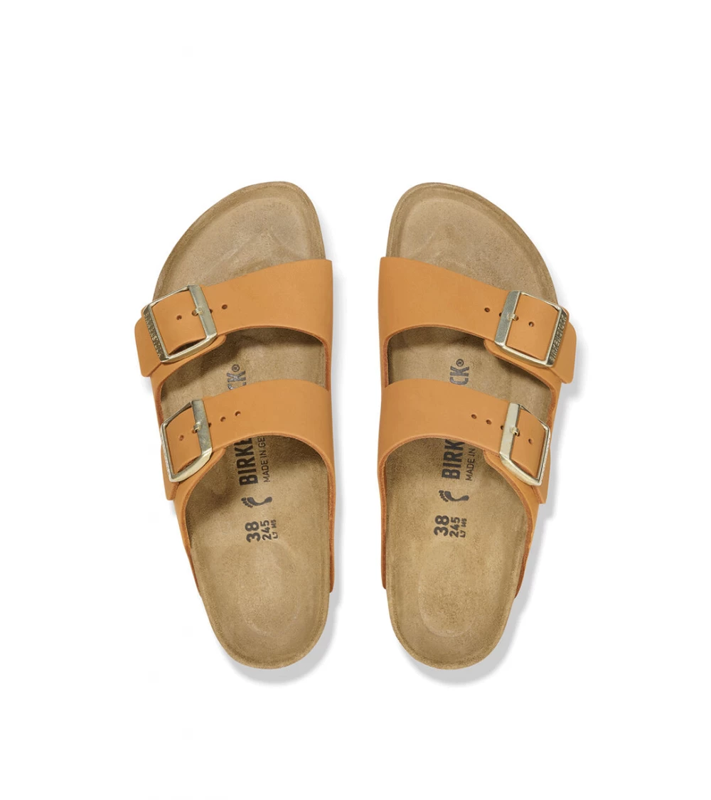 The Arizona sandal with the timeless Birkenstock design has over the years become one of the German brand’s flagship models and a must-have during the summer season. In this version, the upper adds a touch of elegance and femininity to this classic. The structure consists of an upper made of Birko-Flor®, a dermocompatible and resistant material, with a double strap with metal buckles for adjusting the fit. Comfort is ensured by the EVA sole, the anatomical cork and latex footbed with cushioning function and the suede insole. 100% Made in Germany.