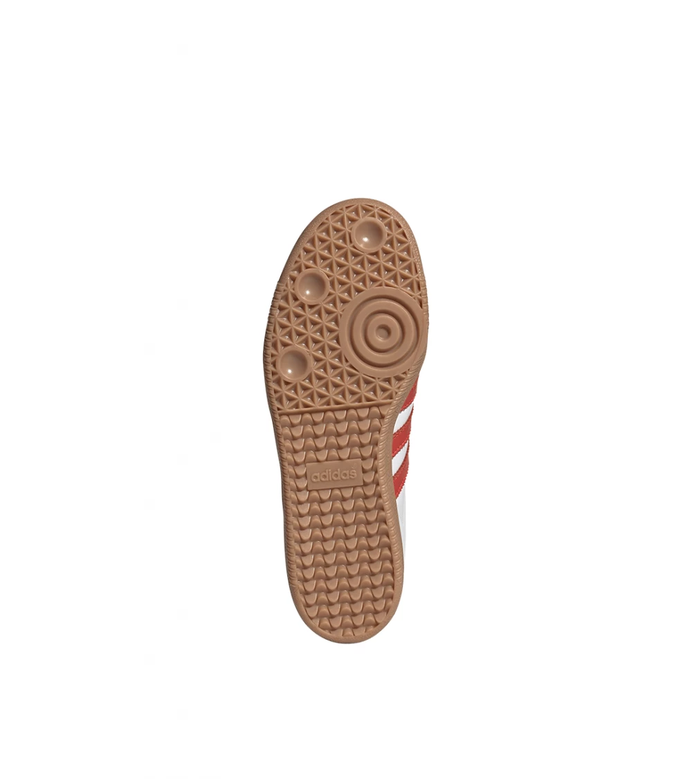 Designed for use on indoor soccer fields, the Adidas Samba OG quickly became a streetstyle icon beloved by all. Leather upper with suede front inserts. The model has changed over the years, but other details remain true to the original model: iconic contrasting side bands on the side, synthetic tongue with logo print and brand lettering, gold laminated detail and contrasting heel patch. EVA midsole ensures comfortable fit, rubber outsole.