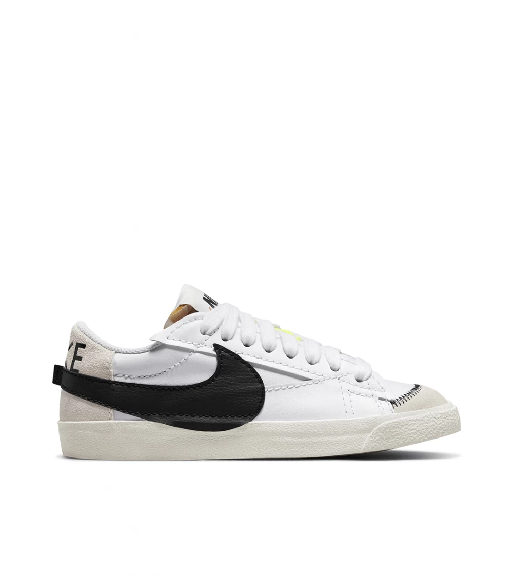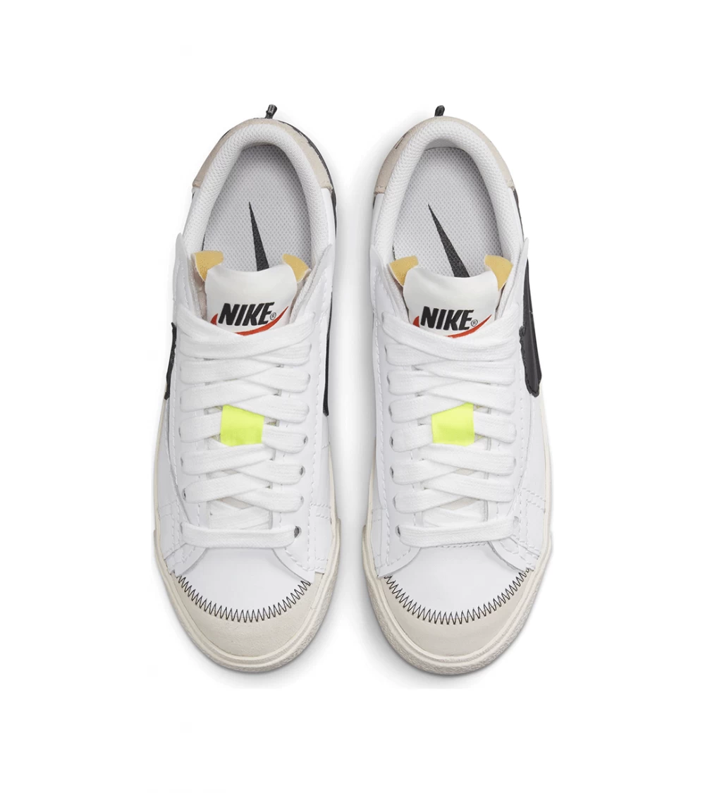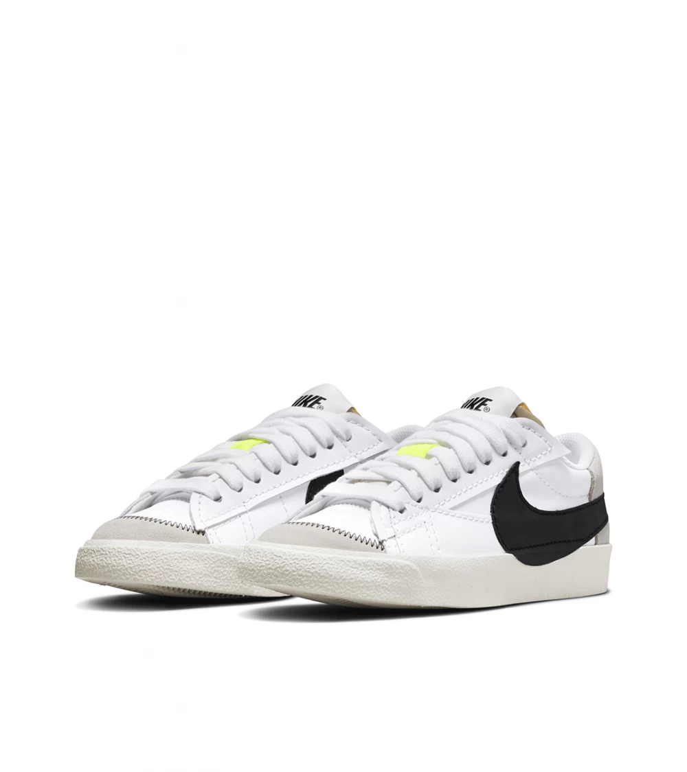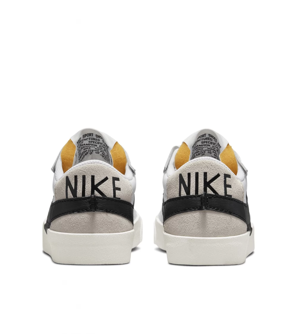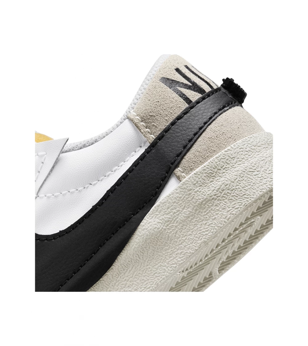 Since its launch in 1972, the design and versatility of Nike’s Blazer model has had a huge impact on sports fashion and streetwear, to the point that it is still a must-have for trend setters today. The brand new Jumbo version with a low-top profile is proposed as a perfect mix between vintage and impact style and lends itself to any casual combination for an original result and an unmistakable style. The old style is in fact kept more updated with an oversized Swoosh design, the extra large cotton laces add a gritty touch and favor a simple lacing. The upper in soft and sturdy white leather features outer layers of suede on the back and on the toe that recall a legendary basketball look. Iconic tongue with visible sponge and stitched label that gives vintage accents, large Nike logo printed on the heel. The rubber tread pattern with a herringbone pattern ensures ideal traction.