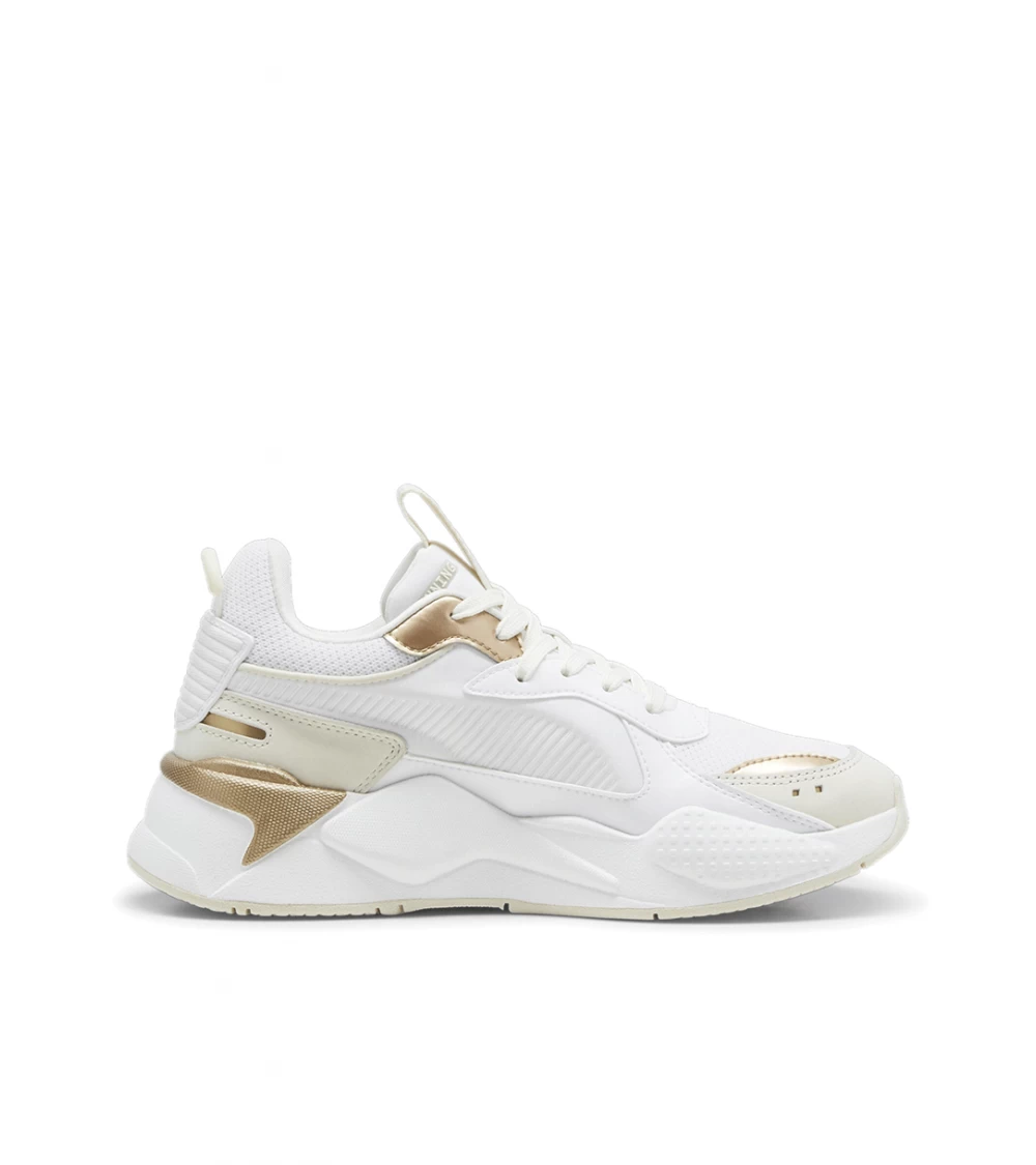 The RS-X are back! The Puma RS-X Glam Shoe comes in a new edition, different from its predecessors. The Suede and Nubuck version features a mesh upper, synthetic leather and suede details. The lacing system features laces that adjust the fit. The base of the tongue bears the model’s name with the brand’s logo, while the high sole ensures comfort with every step. With its futuristic design, this versatile and super-comfy silhouette reflects strong, assertive personalities.