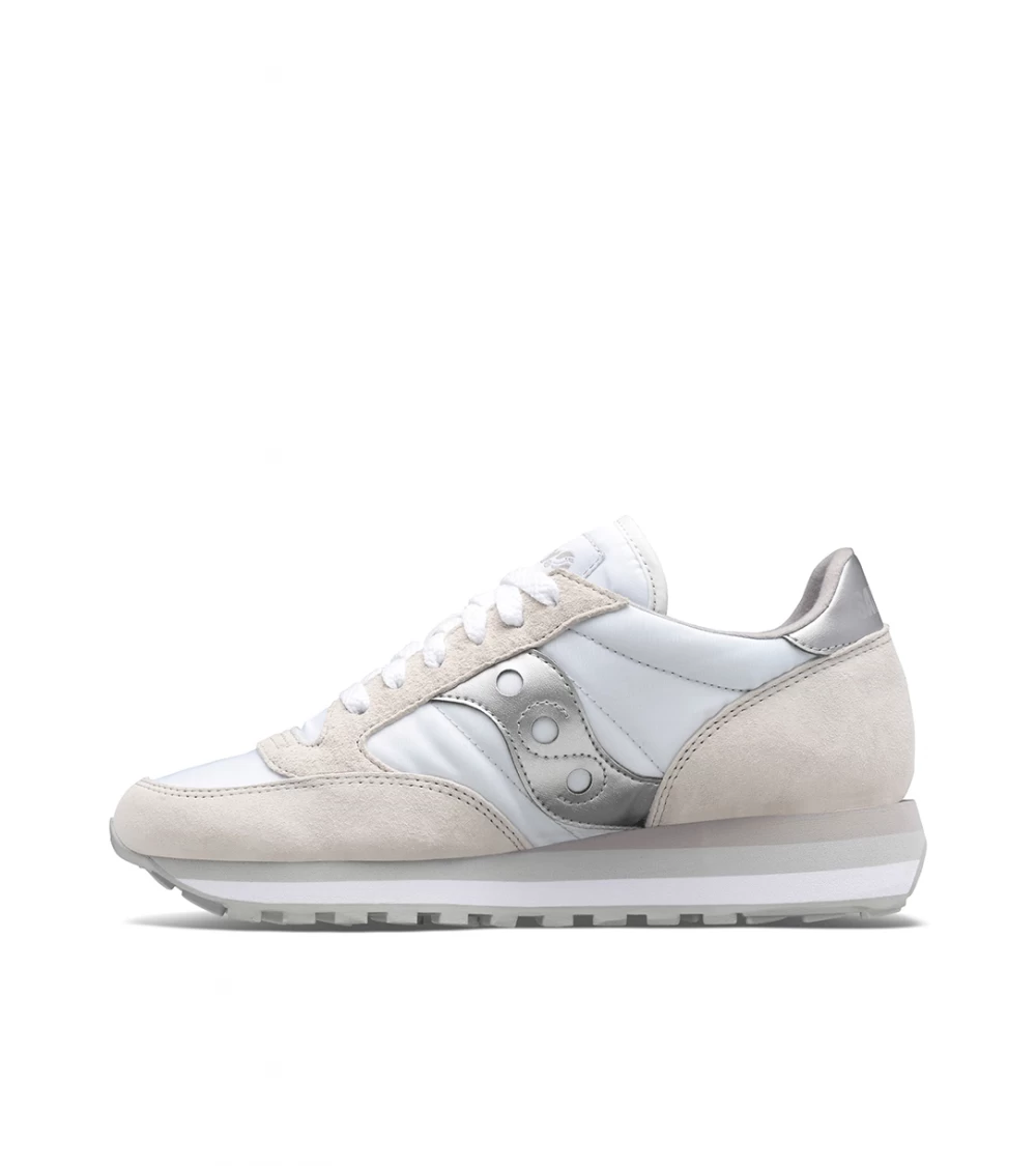 The Saucony Jazz Triple is an evolution of the Jazz model tradition, compared to which they differ in a comfortable higher midsole, which guarantees a perfect balance between stability and cushioning. Design and materials remain unchanged: the mesh and suede upper is laced and features contrasting details, while the rubber sole ensures resistance over time and wear.