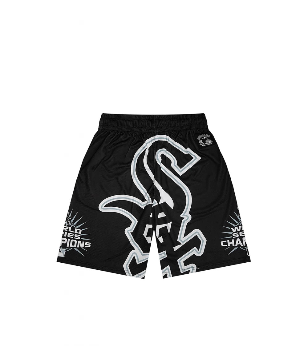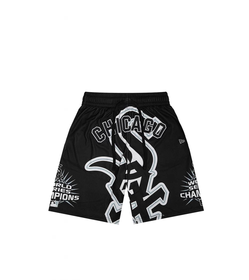 New Era Chicago White Sox MLB shorts made of cool, quick-drying polyester fabric. They feature an all-over print of the team logo and mini new era flag on the front. Short cut and adjustable waistband with external drawstring.