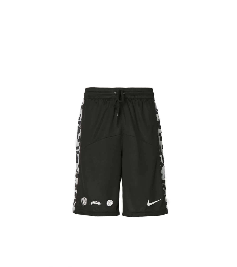 Line inspired by the clothes worn by the Nets starting quintet with these Starting Five shorts from Nike NBA. They pay homage to 40 years of Nike helping to raise the bar for style on the basketball court. Nike and Brooklyn Nets logo printed on length ends, colorful graphics on sides. Knee coverage to keep you light on the court and Nike Dri-FIT technology to wick sweat away from the skin for quick evaporation. Knit mesh fabric.