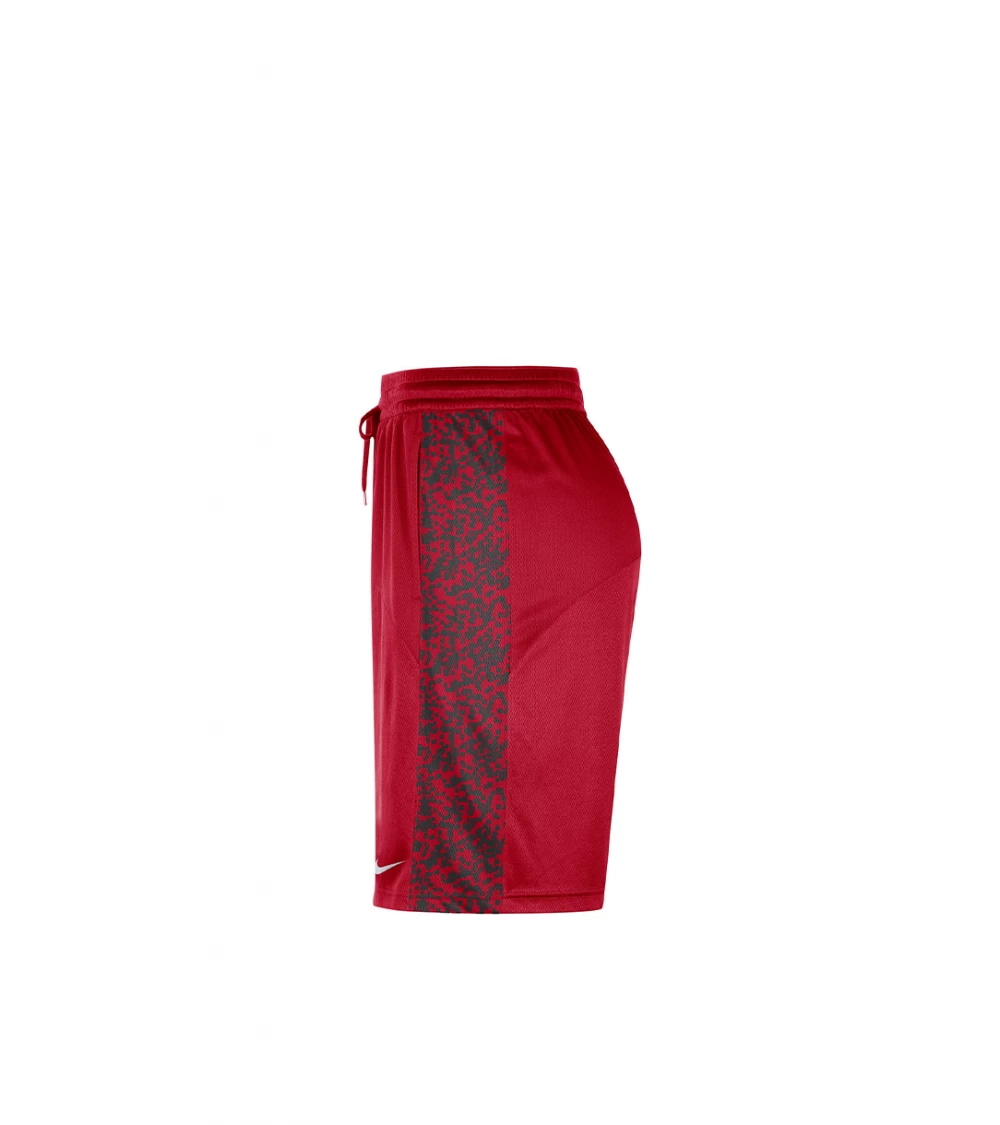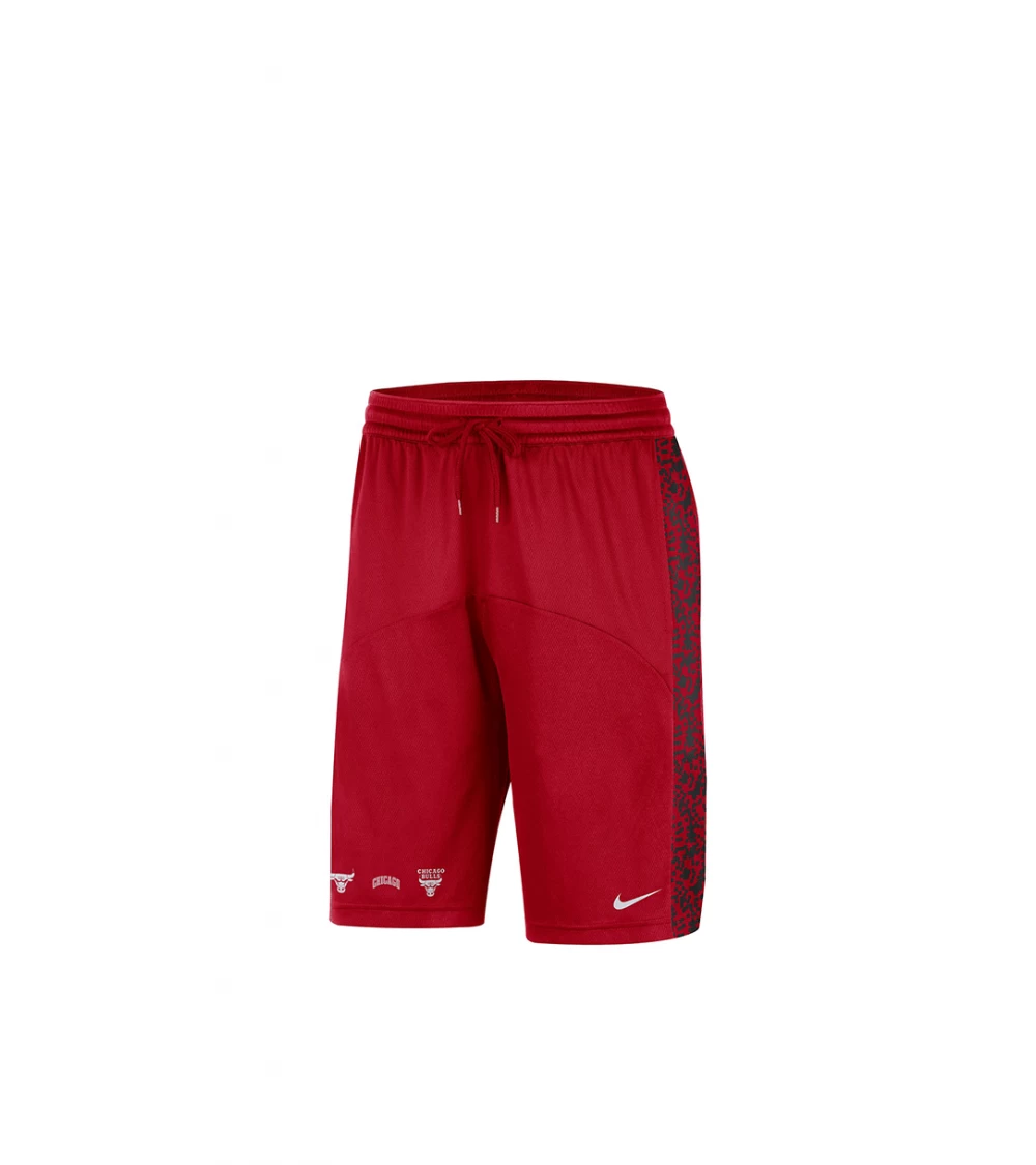 Line inspired by the garments worn by the Bulls starting quintet with these Starting Five shorts from Nike NBA. They pay homage to 40 years of Nike helping to raise the bar for style on the basketball court. Nike and Chicago Bulls logos printed on length ends, colorful graphics on sides. Knee coverage to keep you light on the court and Nike Dri-FIT technology to wick sweat away from the skin for quick evaporation. Knit mesh fabric.