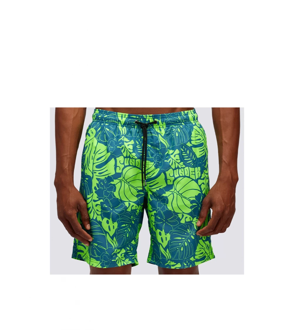Sundek swimming trunks in the classic long boxer version, in an intense colour with an adjustable drawstring waist. On the back we find the classic pocket with Velcro closure with the Sundek logoed rubber patch and fun prints all over the surface. Quick-drying, use of recycled materials.