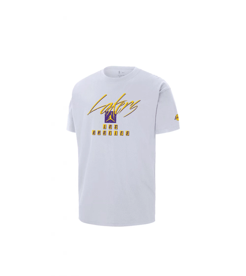 The Statement Edition collection boasts a new addition: the Jordan Nba Lakers T-shirt is made of 100% cotton fabric. Wide hip fit and short sleeve for a comfortable fit. Jordan logo, team lettering embossed on front and team logo printed on sleeve.