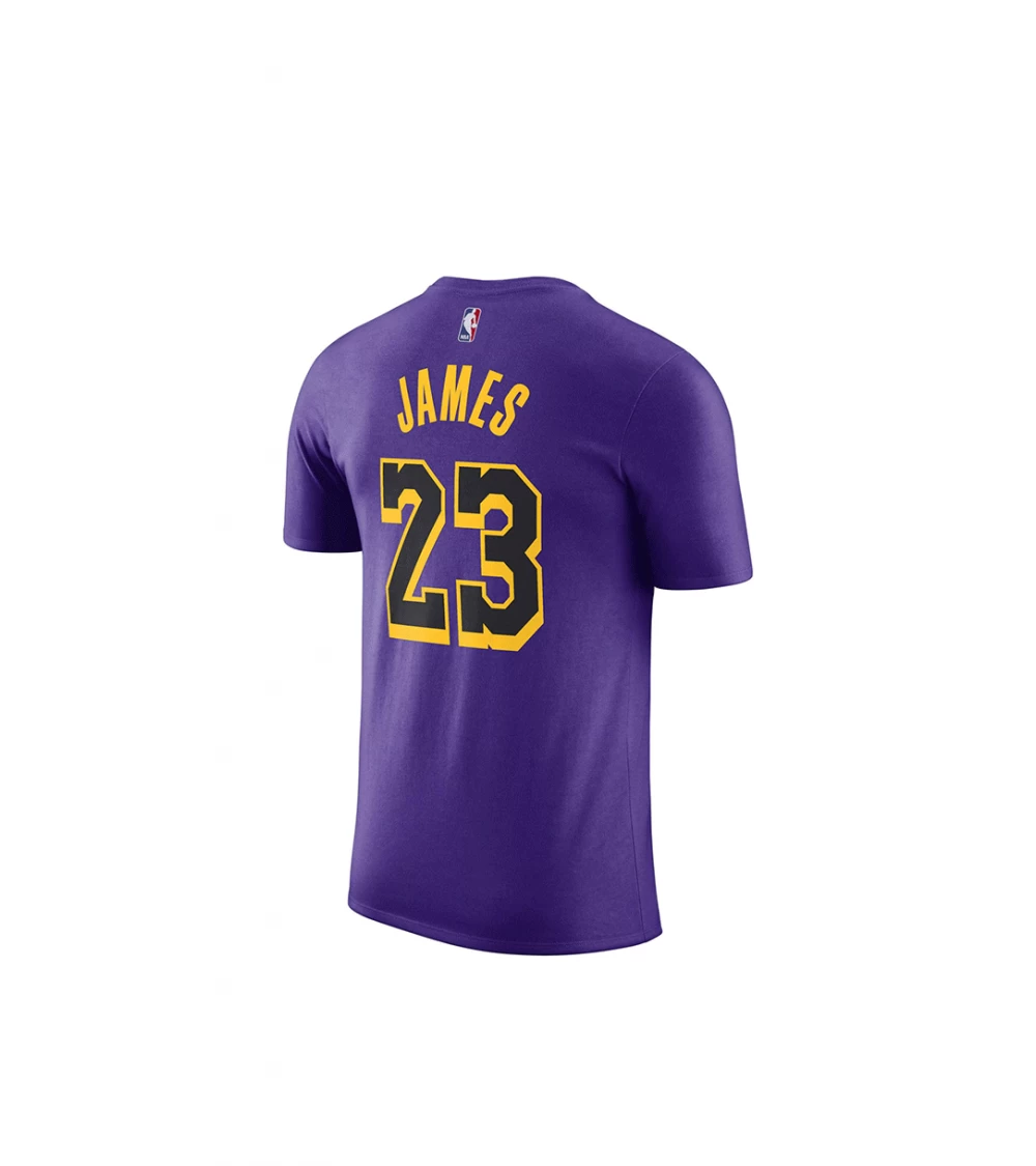 Transform yourself into your favorite basketball champion in the LeBron James Los Angeles Lakers Statement Edition T-Shirt from the Jordan NBA line! The new collection of shirts features front / back prints of the team and the player with the official colors. The crew neck is ribbed, the short sleeves have a regular cut. 100% cotton fabric. Standard fit.