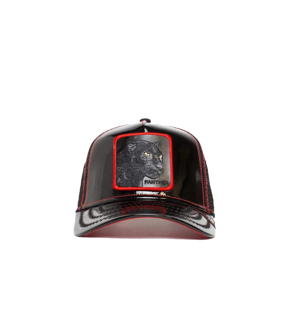 The Goorin Bros Trucker Power Forever is a limited edition model of the successful capsule The Farm. Featuring a unique look in patent faux leather with contrast stitching, this hat with the classic breathable mesh net can be adjusted thanks to the back strap with snap closure. The slightly curved pre-shaped visor features the label with the brand logo sewn on the side. The inside features a soft cotton band that limits perspiration and ensures a more comfortable fit. Panther patch applied on the front side.