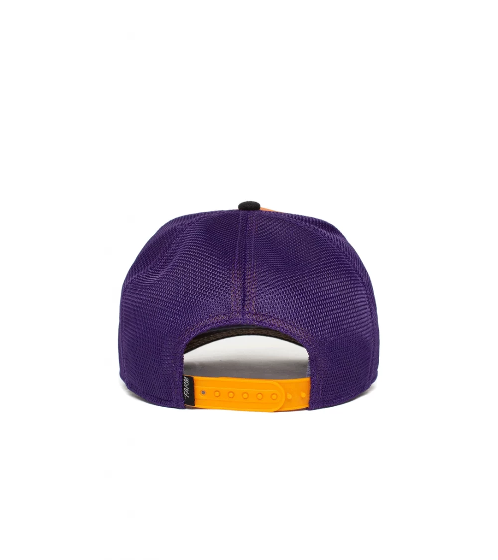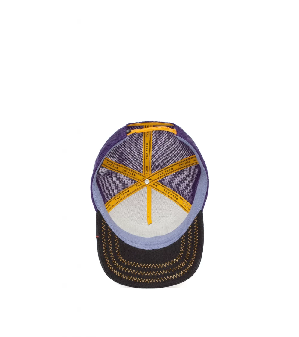 Baseball cap from the Animal Farm line of the American brand Goorin Bros, made of cotton and polyester. The cap consists of 5 panels with mesh, the rigid preformed visor has matching stitching and a logo label stitched on the left side. Toxic Snake patch applied to the front. The fit is adjustable thanks to the rear strap with snap fastener. Inside there is a soft cotton band that ensures comfort and limits perspiration.
