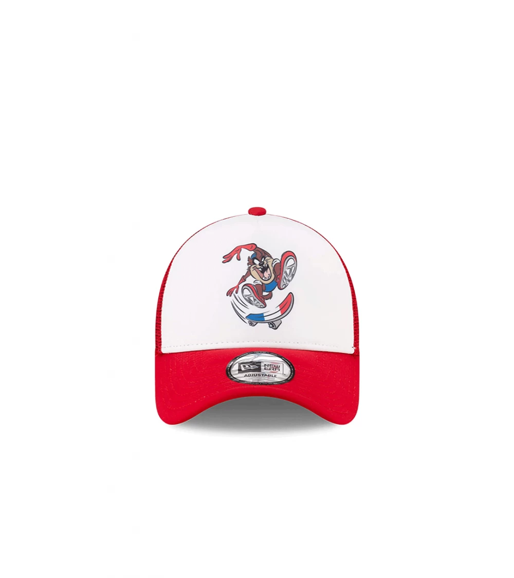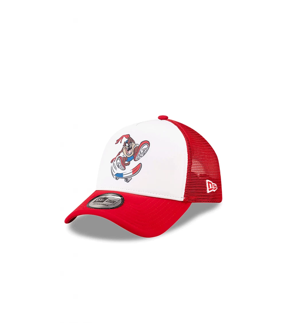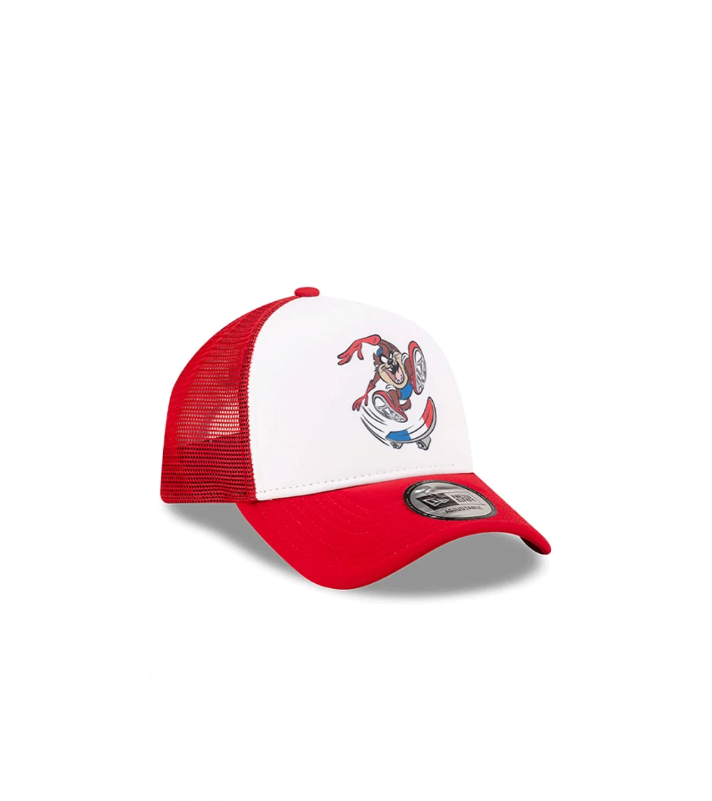 New era returns with a fresh new model for the summer: trucker 9FORTY A-Frame Taz Team Looney Tunes. This version retains its classic structure with a curved visor and shaped crown composed of 6 panels. Adjustable thanks to a rear strap with snap fastening, the hat features a horizontal patch dedicated to the city. Tone-on-tone New Era flag stitched on the left side, mesh on the side and back. Team Looney Tunes logo stitched on the back and Tazmania devil graphic on the front.