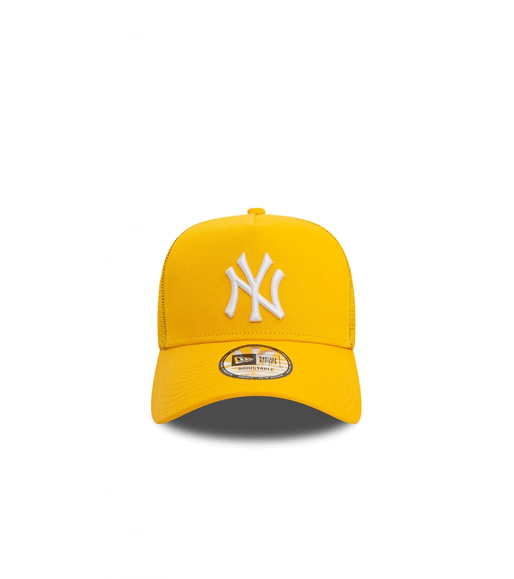 The most iconic of New Era beanies in a special colourway with contrasting embroidered logo: this version of the A-Frame New York Yankees League Essential retains the characteristic structure of the 6-panel cap and the slightly curved preformed hard visor. The mesh back makes the accessory a trucker, and the strap allows for customisation of the fit. The look is completed by the embroidered New York Yankees logo on the front and the New Era mini flag stitched on the left side.